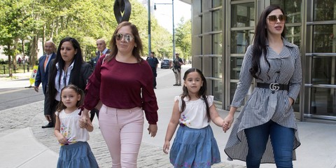 Guzman's wife and the girls' mother, Emma Coronel Aispuro , brought the twins into the Brooklyn courtroom before Colombian national police testified about drug seizures, according